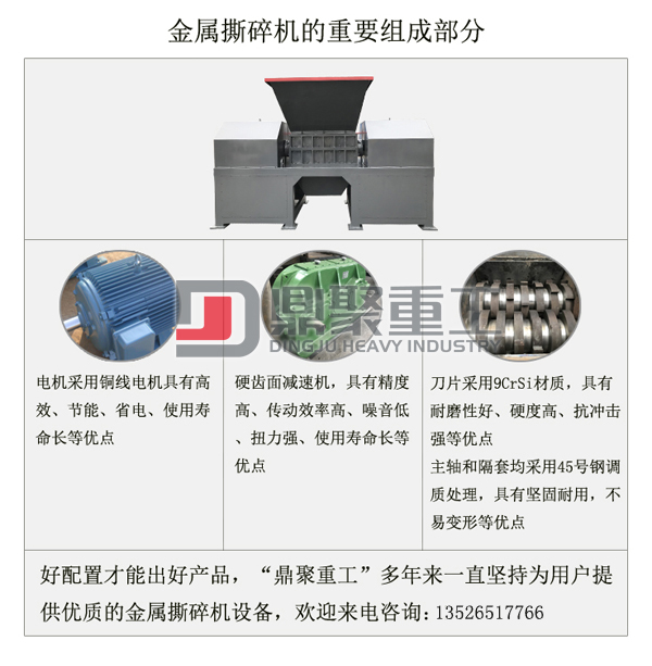 金屬撕碎機(jī)是一款用于對(duì)廢舊金屬進(jìn)行粗破的機(jī)械設(shè)備,可以對(duì)汽車殼、摩托車、自行車、彩鋼瓦、油桶、鋼筋、鋼絞線、金屬壓塊、鐵皮、角鐵、槽鋼等金屬物料進(jìn)行撕碎,具有撕碎力度大,產(chǎn)量高,噪音小等優(yōu)點(diǎn)。